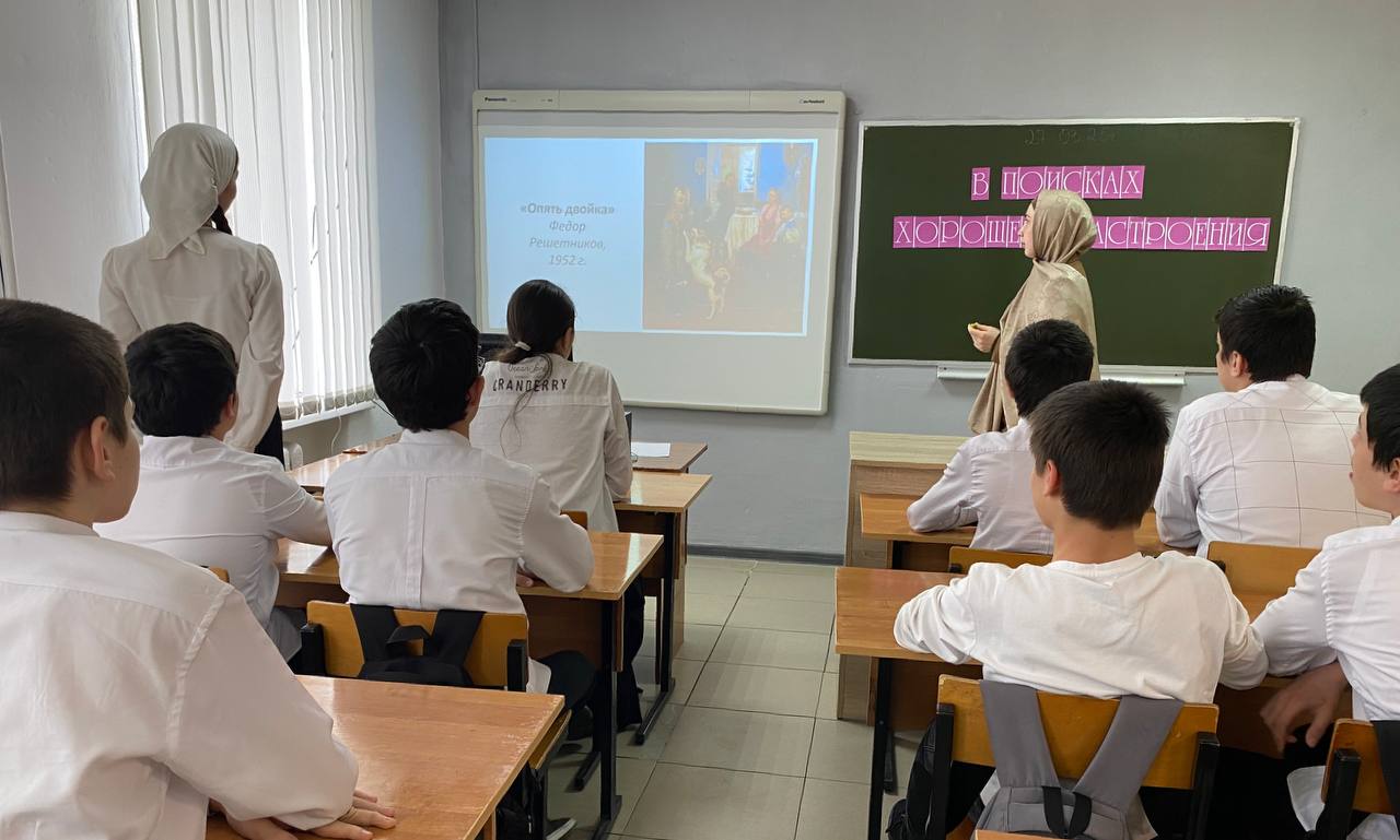 03.04.2025Социальным педагогом Шапиевой О.М. проведен час общения для обучающихся 8 класса «В поисках хорошего настроения».