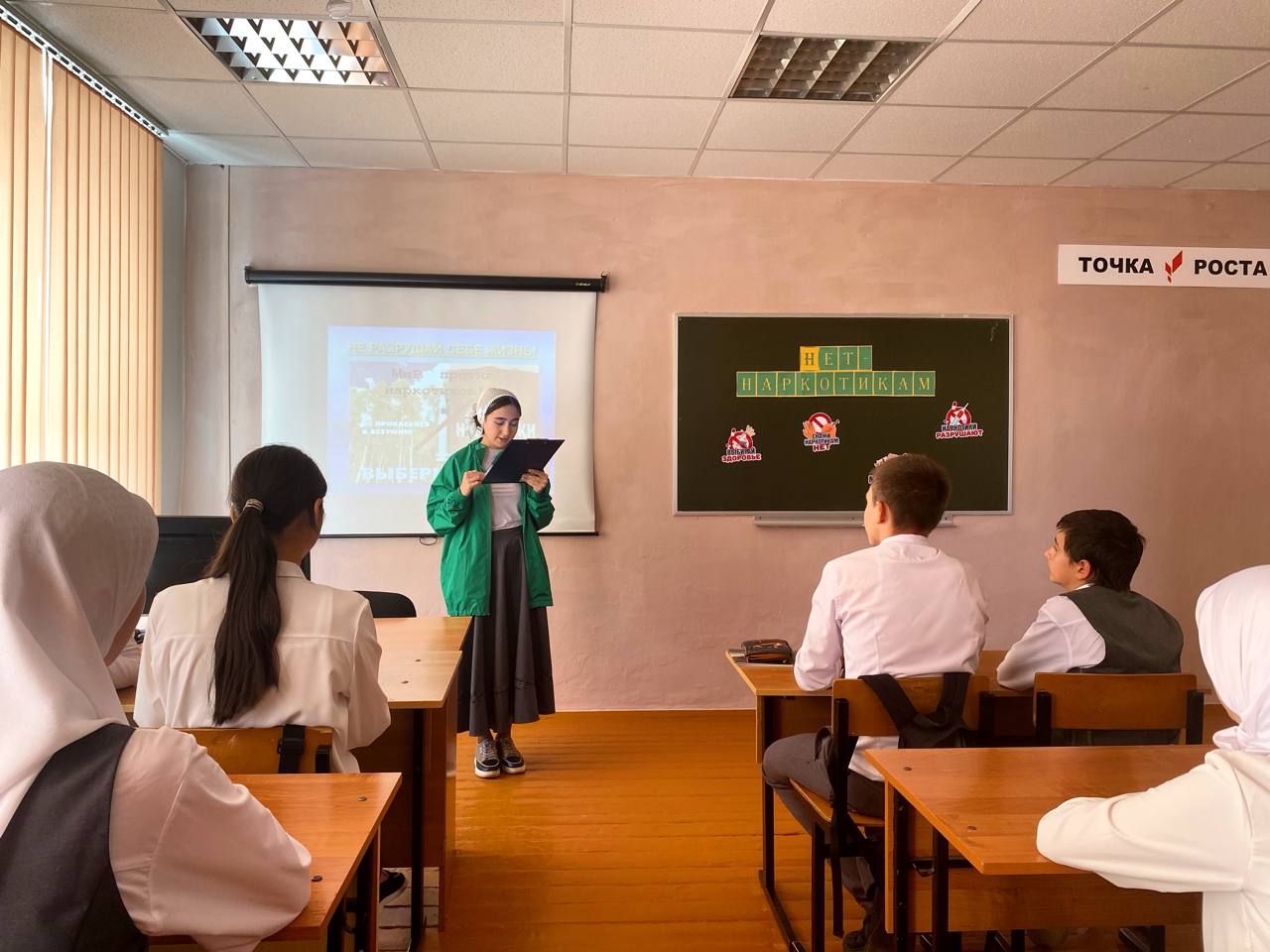 25.09.2025Активистка ЧРОО ЕДЮО «Юные Кадыровны» Урузбиева Жейна провела беседу на тему «Нет — наркотикам» с учащимися 8-10 классов. В ходе мероприятия были рассмотрены серьезные последствия употребления наркотиков, а также важность здорового образа жизни.
