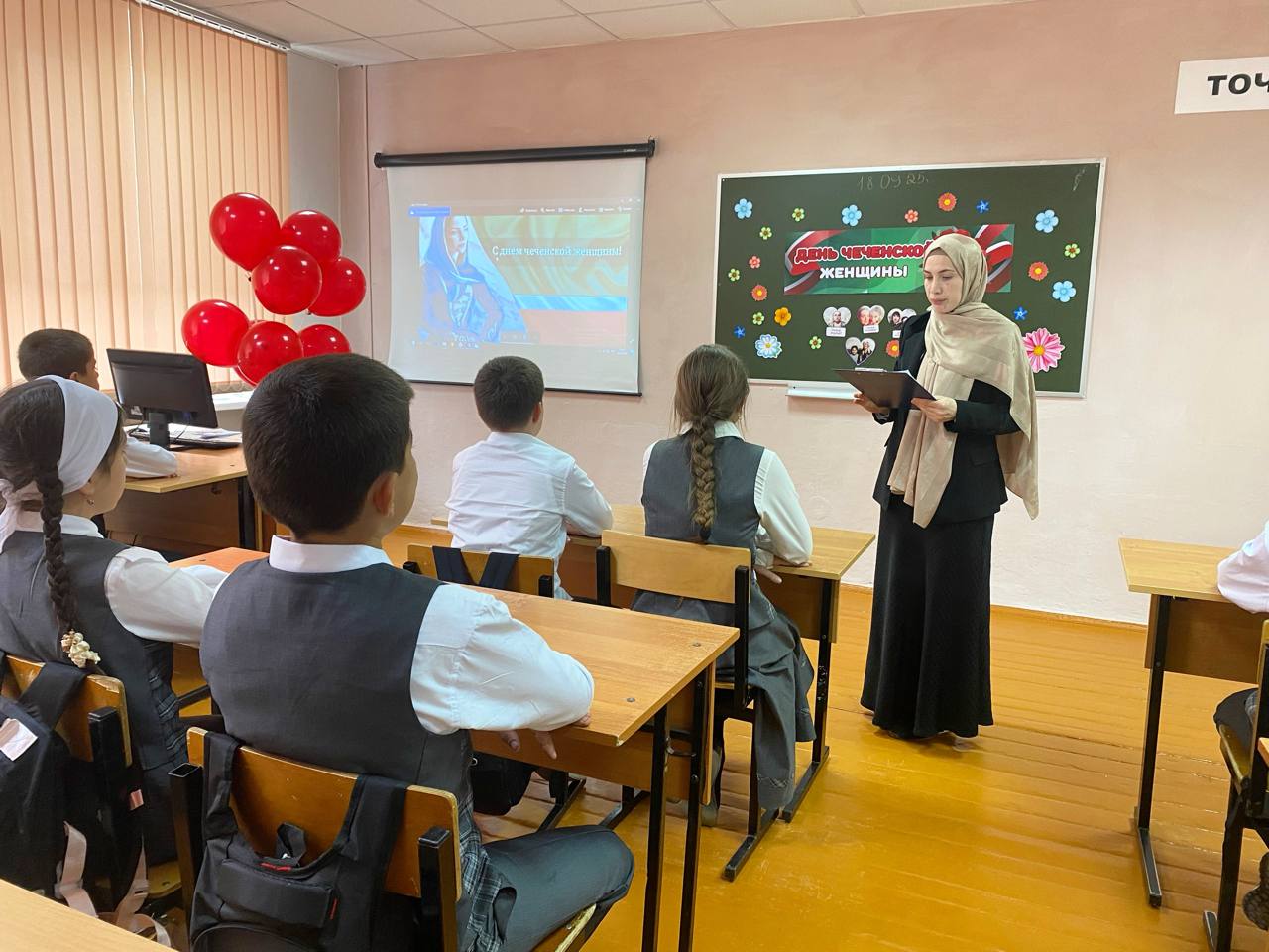 18.09.2025Сегодня для наших ребят прошли тематические классные часы, приуроченные ко Дню Чеченской женщины: «Чеченская женщина - наша гордость»;«Великие подвиги чеченских женщин».Классные руководители рассказали об истории праздника: