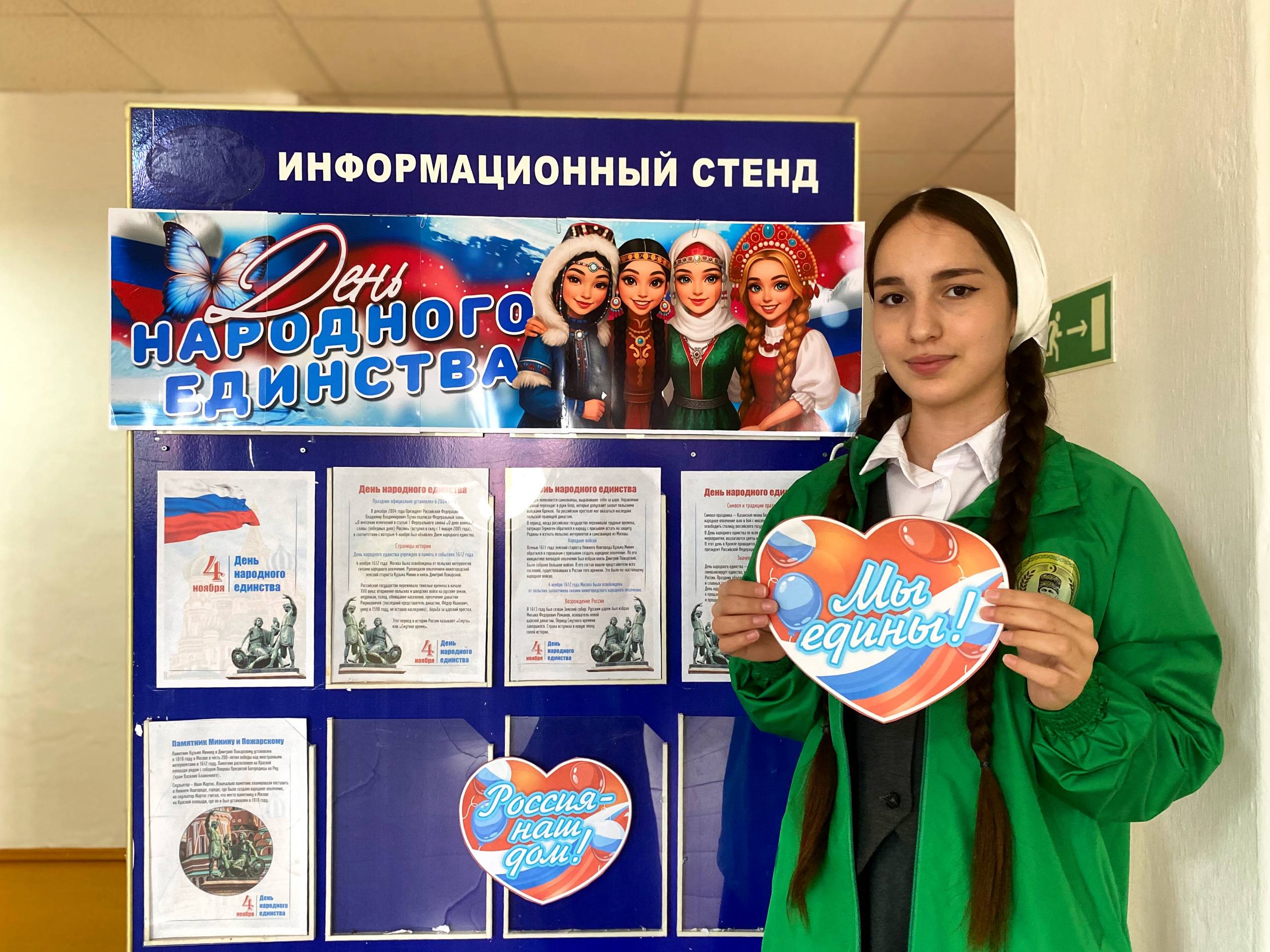 22.10.2025Активистка ЧРОО ЕДЮО «Юные Кадыровцы» Висаитова Амина оформила информационный стенд ко Дню Народного Единства.