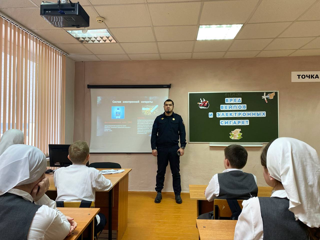 14.01.2026Социальный педагог Шапиева Оксана Муртазалиевна совместно с инспектором ПДН Муташевым Билалом Юнусовичем провели важную беседу с учащимися 6 класса на тему «Вред вейпов и электронных сигарет». 🚭