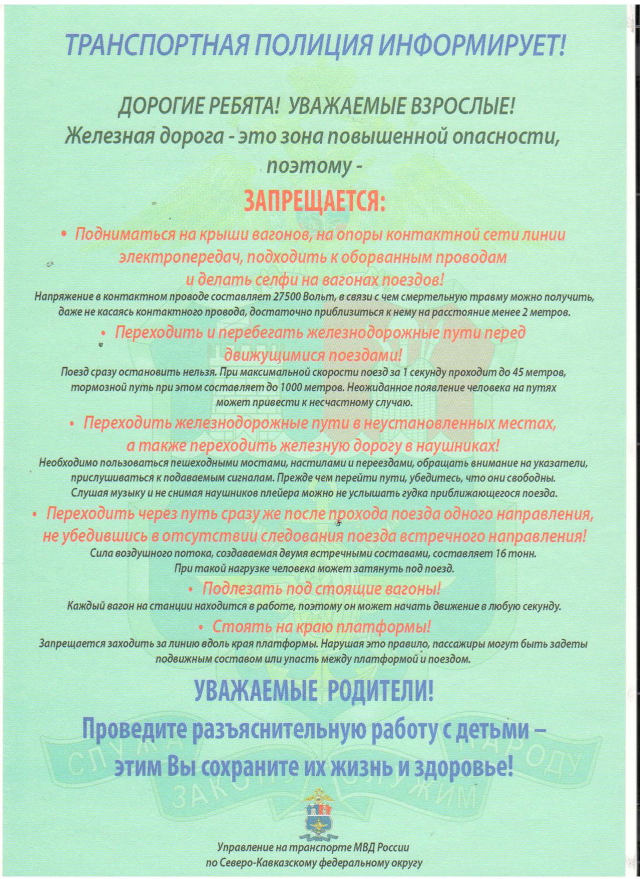 Дорогие ребята! Уважаемые взрослые! Железная дорога-это повышенной опасности, поэтому-Запрещается;