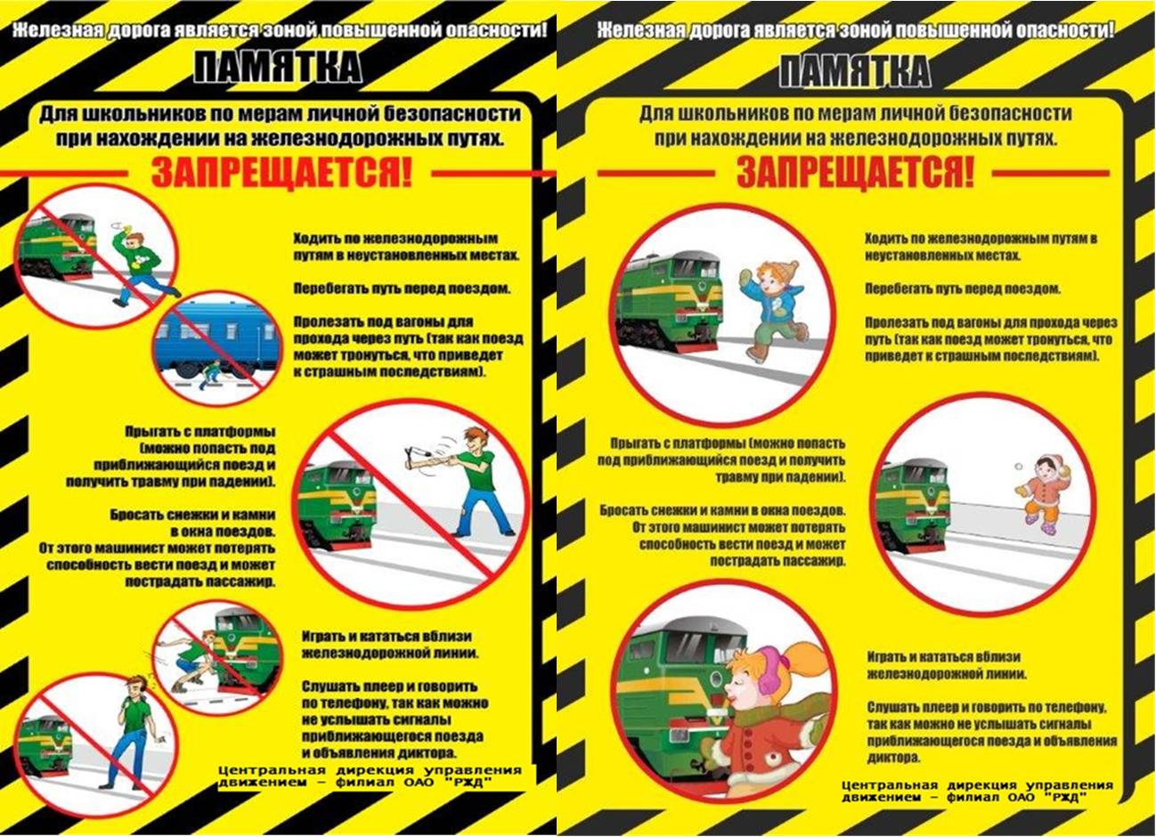 Памятки для школьников и родителей по мерам безопасности при нахождении на железнодорожных путях