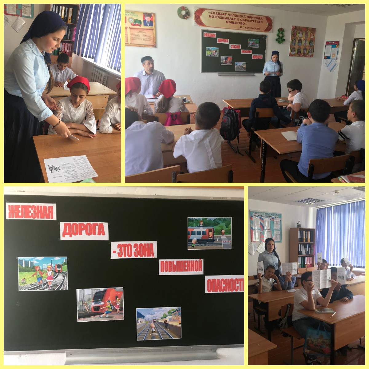 -участница ЕДЮО «Юные Кадыровцы» Далгатова Н. провела урок безопасности на железной дороге «Железная дорога-это зона повышенной опасности», после чего Написат раздала всем памятки «Железная дорога -