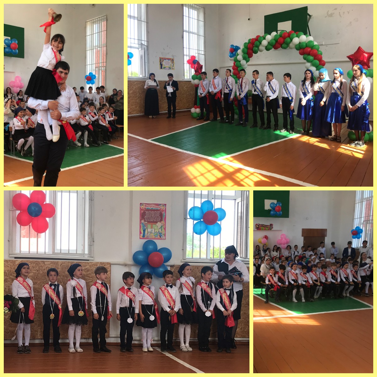 Завершилось торжественное мероприятие последним звонком для выпускников, который дали ученица 1 класса Уморходжиева Р. и ученик 11 класса Делимханов Ш.